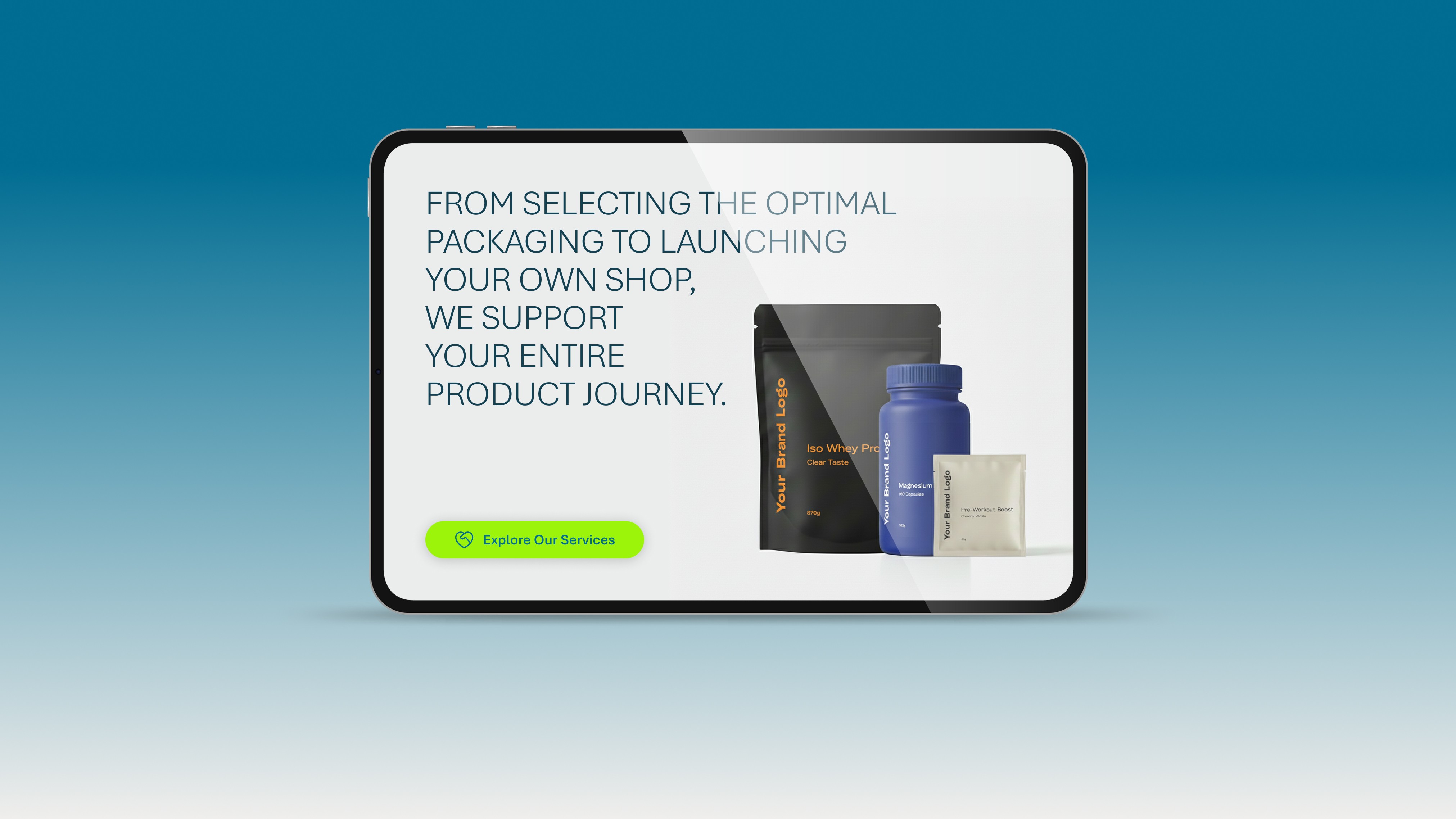 Launch ready-to-go supplement products without complexity. Choose from science-backed formulations, customize your branding and packaging, and place your order directly in the shop — all EU-compliant and manufactured in Europe.